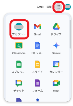 2. Googleアプリ( 画面右上の9つの点 )をクリックし、アカウントを選択します。