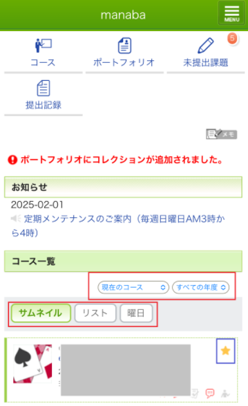 ホーム画面の「コース一覧」から表示方法が変更できます。