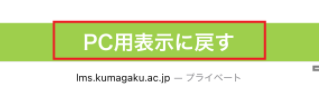 スマートフォン用表示からPC用表示に戻すには、画面を一番下までスクロールし、下部に表示される「PC用表示に戻す」をタップしてください。