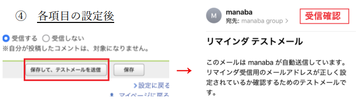 → 登録などしたメールアドレスに「リマインダ テストメール」が受信されたか確認してください。